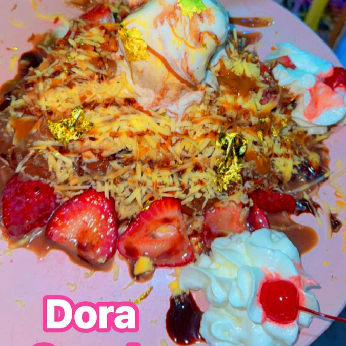 crepa con queso de bola fresa platano nutella lechera nieve y una capa de queso bola