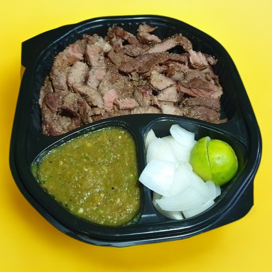 1 kg de fajita angus, acompañado de salsa, cebolla y tortillas.
