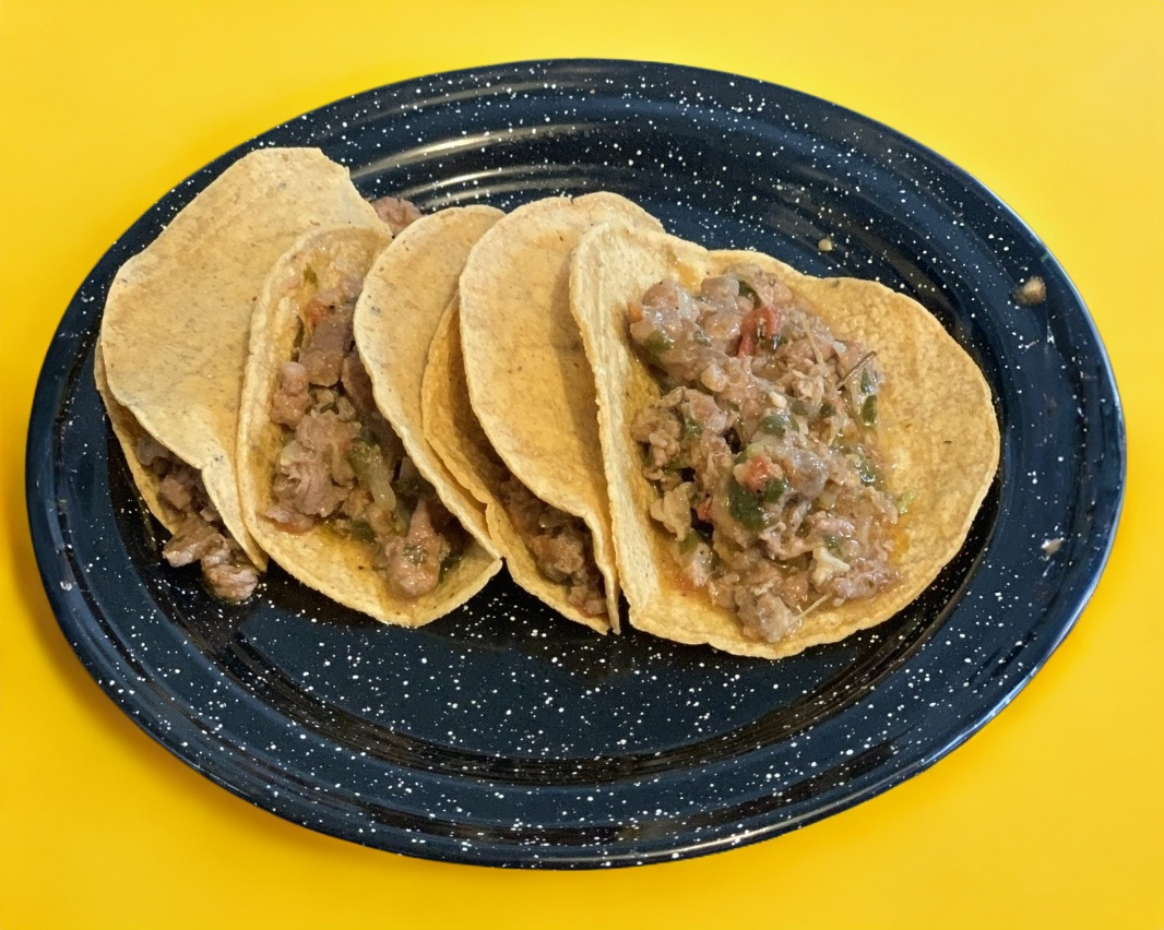 Orden de 5 tacos, en tortilla de maiz, de carne de bistec ranchero