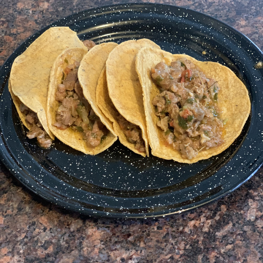 Orden de 6 tacos, en tortilla de maiz, de carne de bistec ranchero