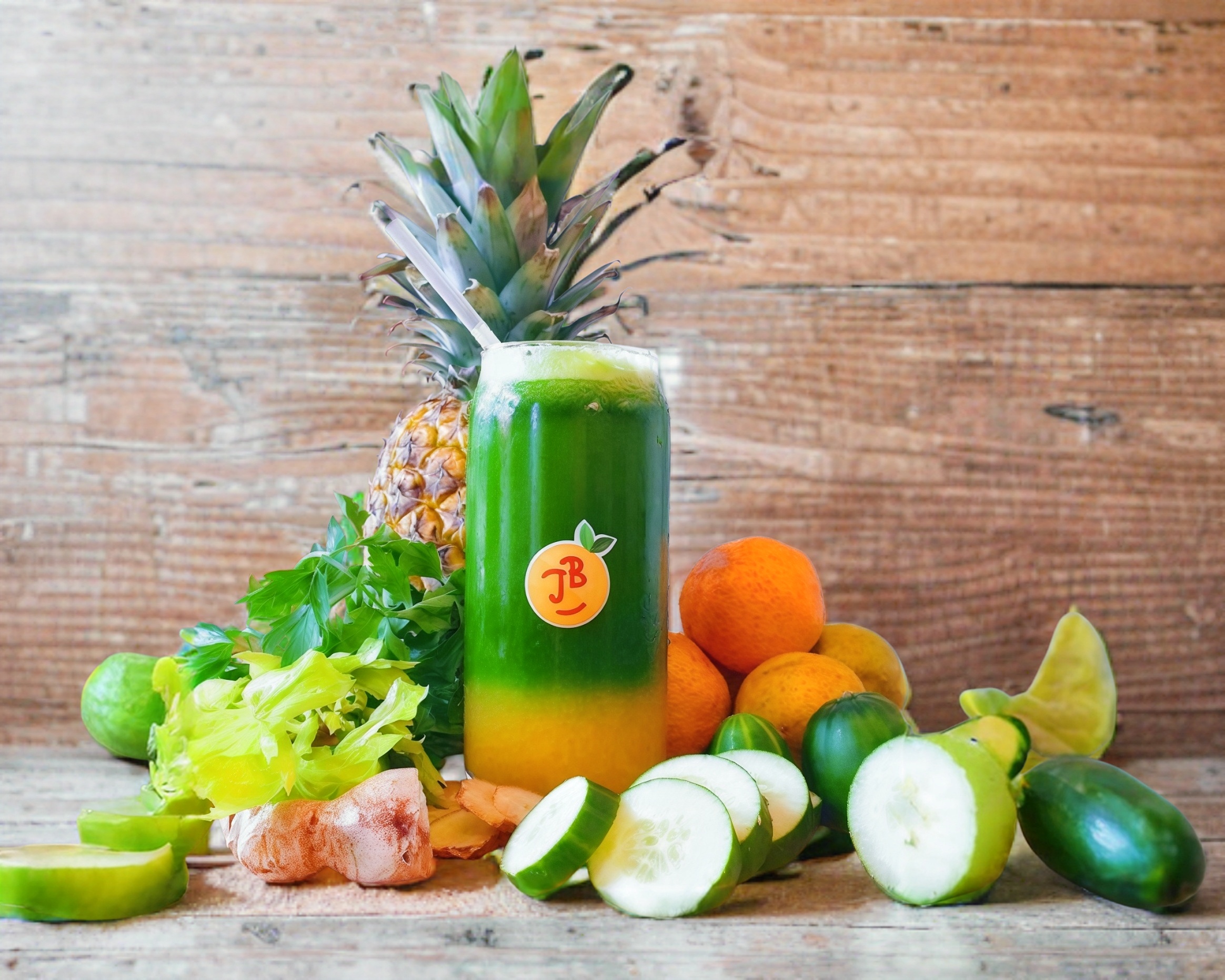 Naranja, piña, perejil, pepino, apio, espinacas, jengibre.