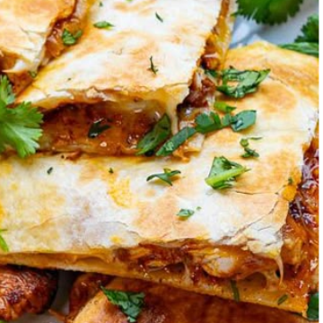 Quesadilla con carne al pastor doble tortilla. incluyen: totopos y salsa