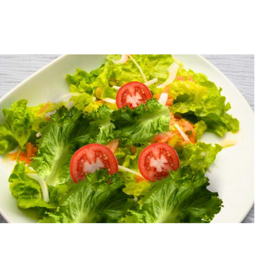 Ensalada de lechuga romana, zanahoria, tomate y aderezo ranch.