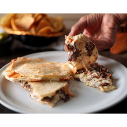 Quesadilla con fajita doble tortilla. incluyen: totopos y salsa