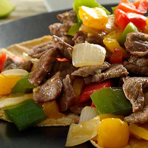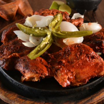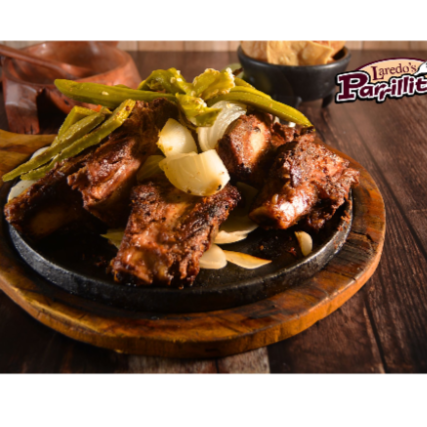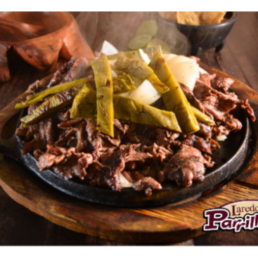 Fajita, polonés, costilla centro, cebolla asada, tortilla de maíz, tortilla de harina, totopos, salsas y limones