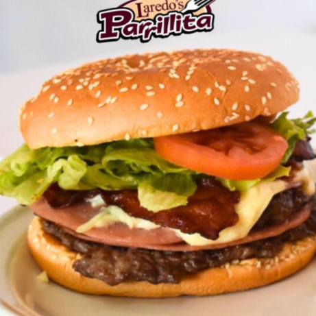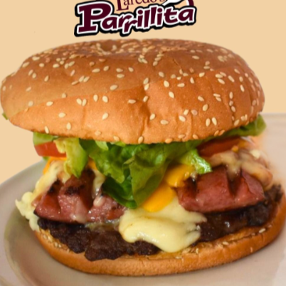 Pan, doble carne, jamón, queso amarillo, queso asadero y tocino