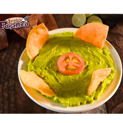 Guacamole,cebolla asada , tortilla de maíz, tortilla de harina, totopos, salsas