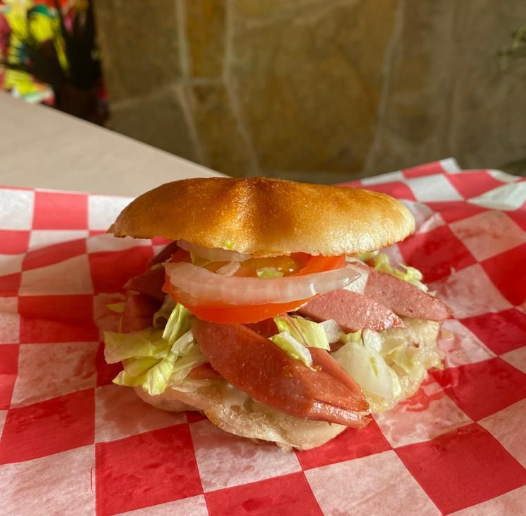 Incluye salchicha 50 g, lechuga, tomate, cebolla y mostaza.