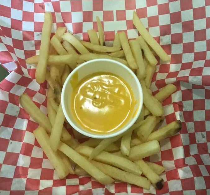 Pan, carne 50 g, lechuga, tomate, cebolla y mostaza.