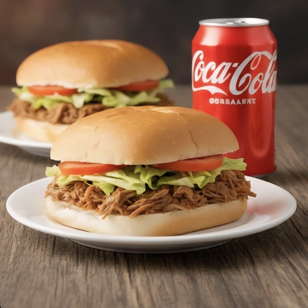 2 lonches de ternera, incluyen frijoles, lechuga, tomate, pepinillos, mayonesa, mostaza, & 1 coca de 355ml