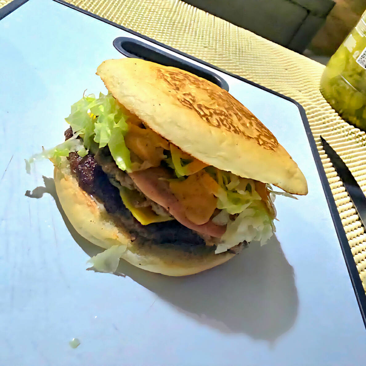 1 hamburguesa con 2 carnes incluye frijoles,2 carnes caseras, jamon, queso amarillo, lechuga, tomate, pepinillo,mayonesa,mostaza,ketchup