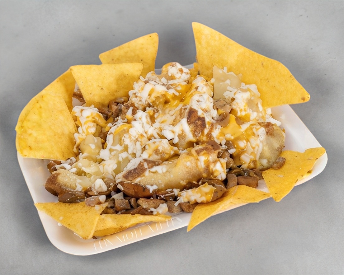 Papa asada al comal con mantequilla en la base, carne asada, queso amarillo tipo americano, crema, queso blanco de elote y totopos incluye salsa, limones y pico de gallo en bolsa.