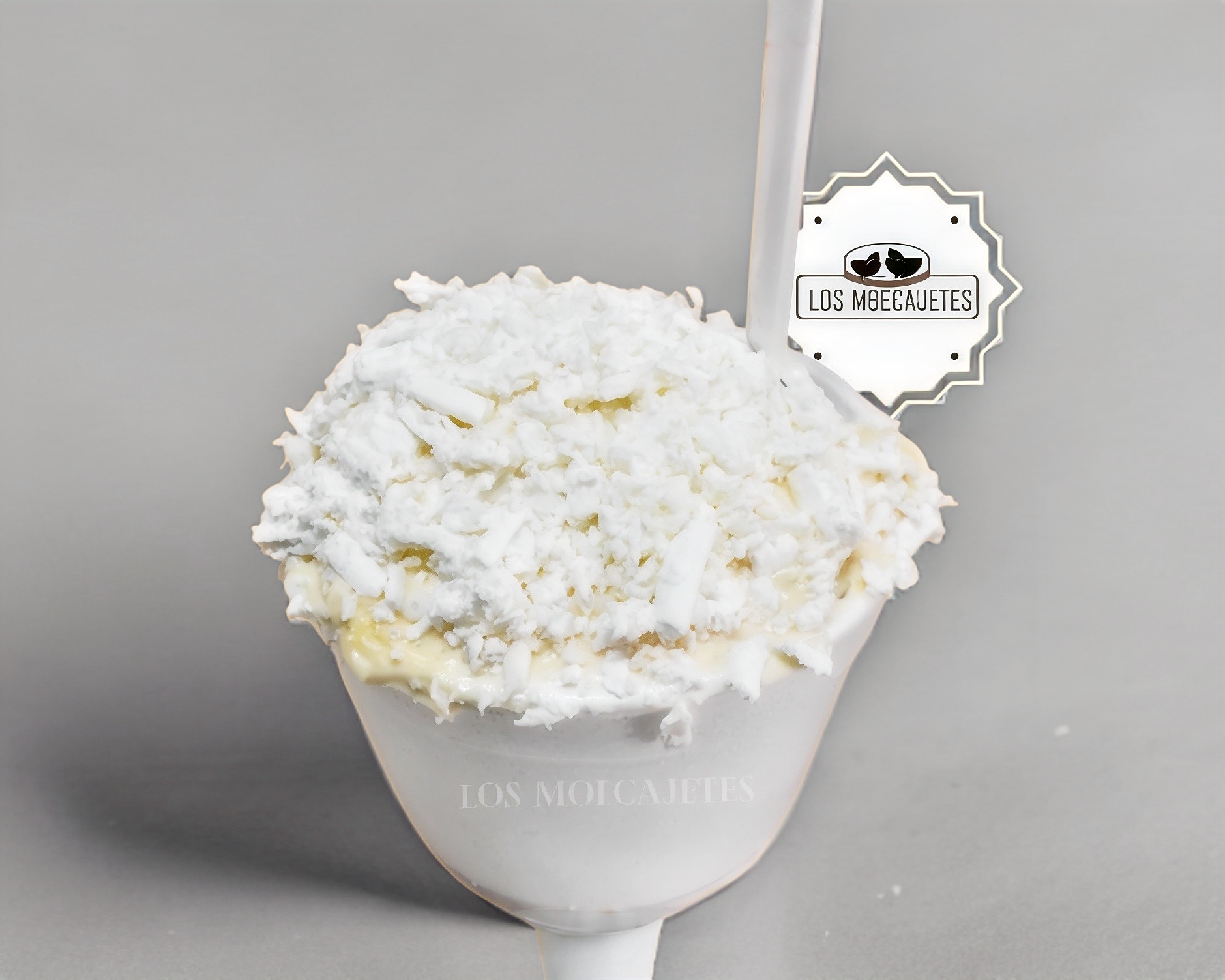 Vaso grande con mayonesa en el fondo, mantequilla, su respectivo elote desgranado, más mayonesa arriba y queso de elote.