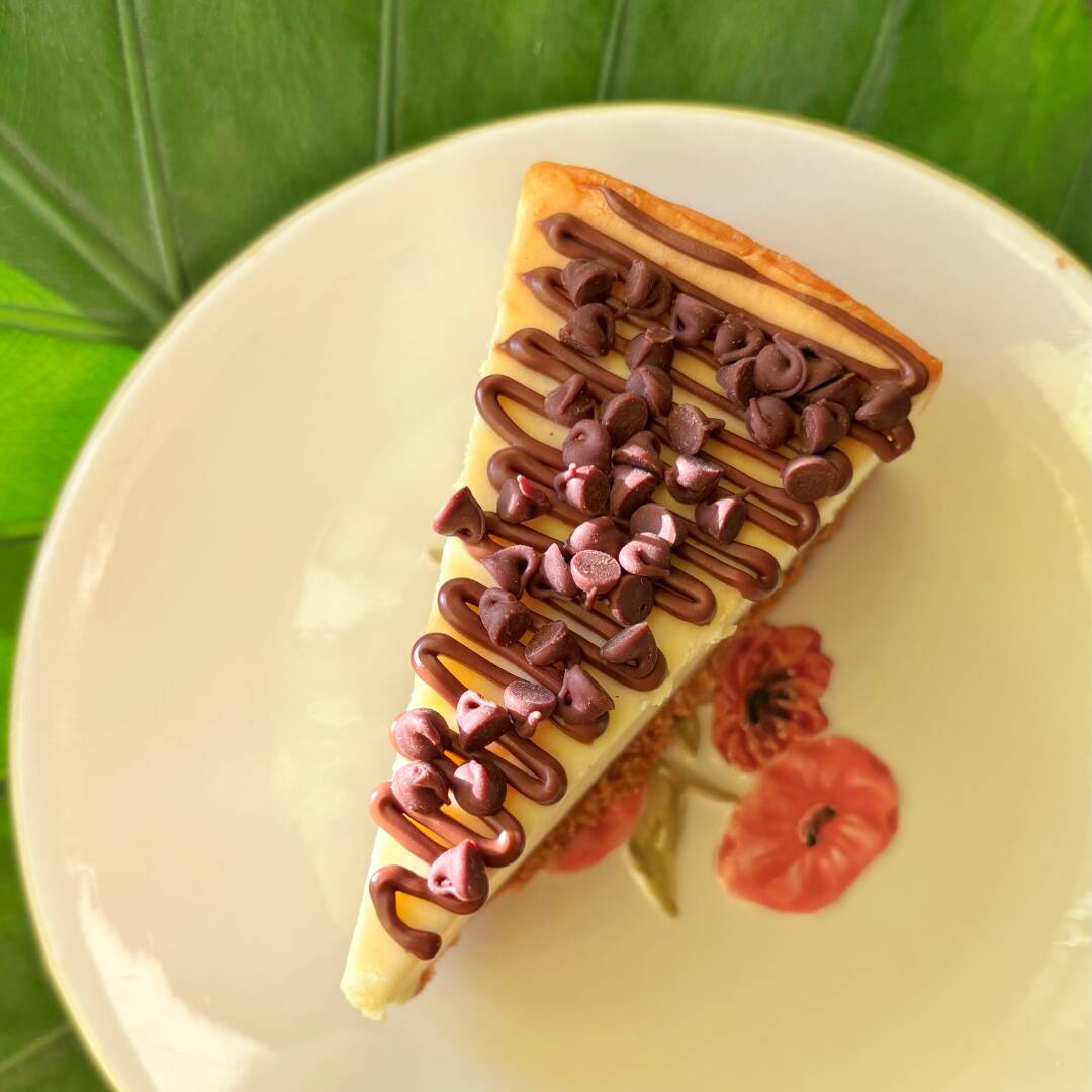 Rebanada de cheesecake con nutella y chispas de chocolate