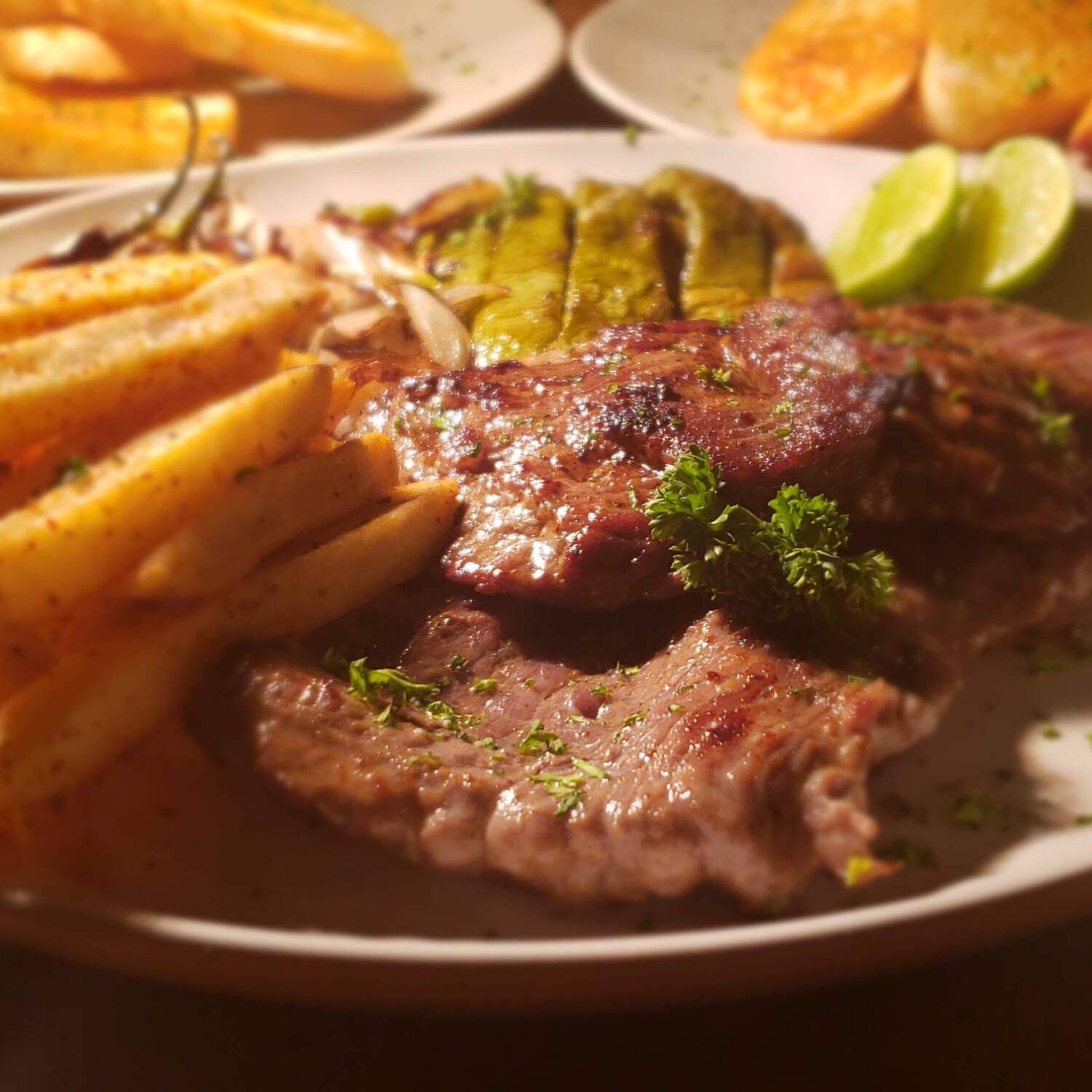 Acompañado de chiles toreados, cebolla asada, nopales y guarnición a elegir.