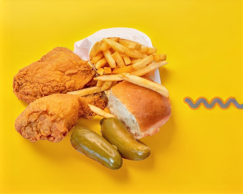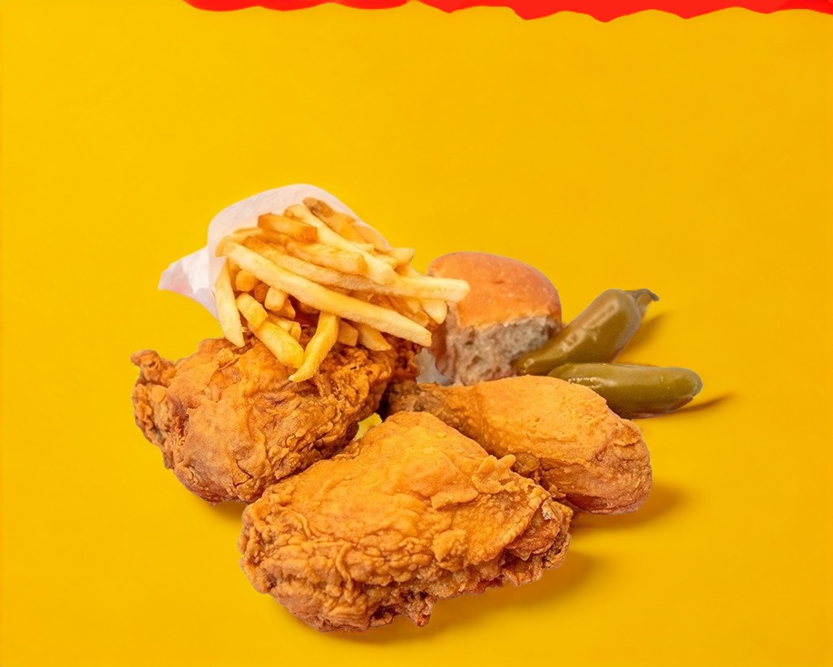 (Combo personal) de 4 Tiras de Pollo+ Pure de 6 onzas + Ensalada de Repollo de 6 onzas + Pan Suavecito+ Aderezo Ranch.