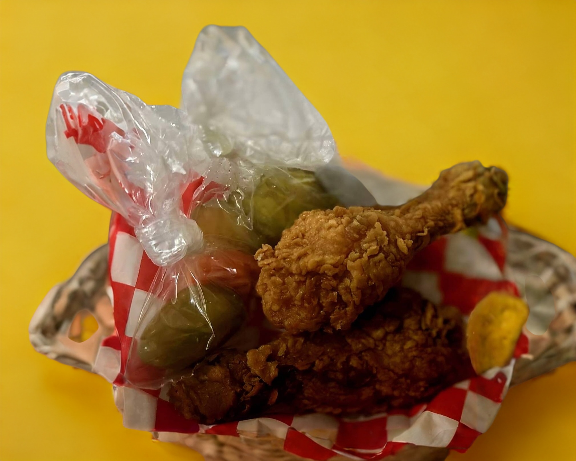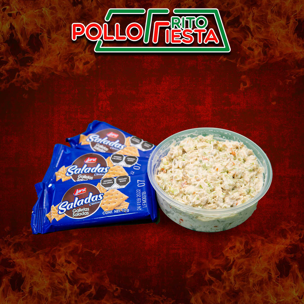 2 piernitas de pollo + pure 6 onzas + pan + jalapeño