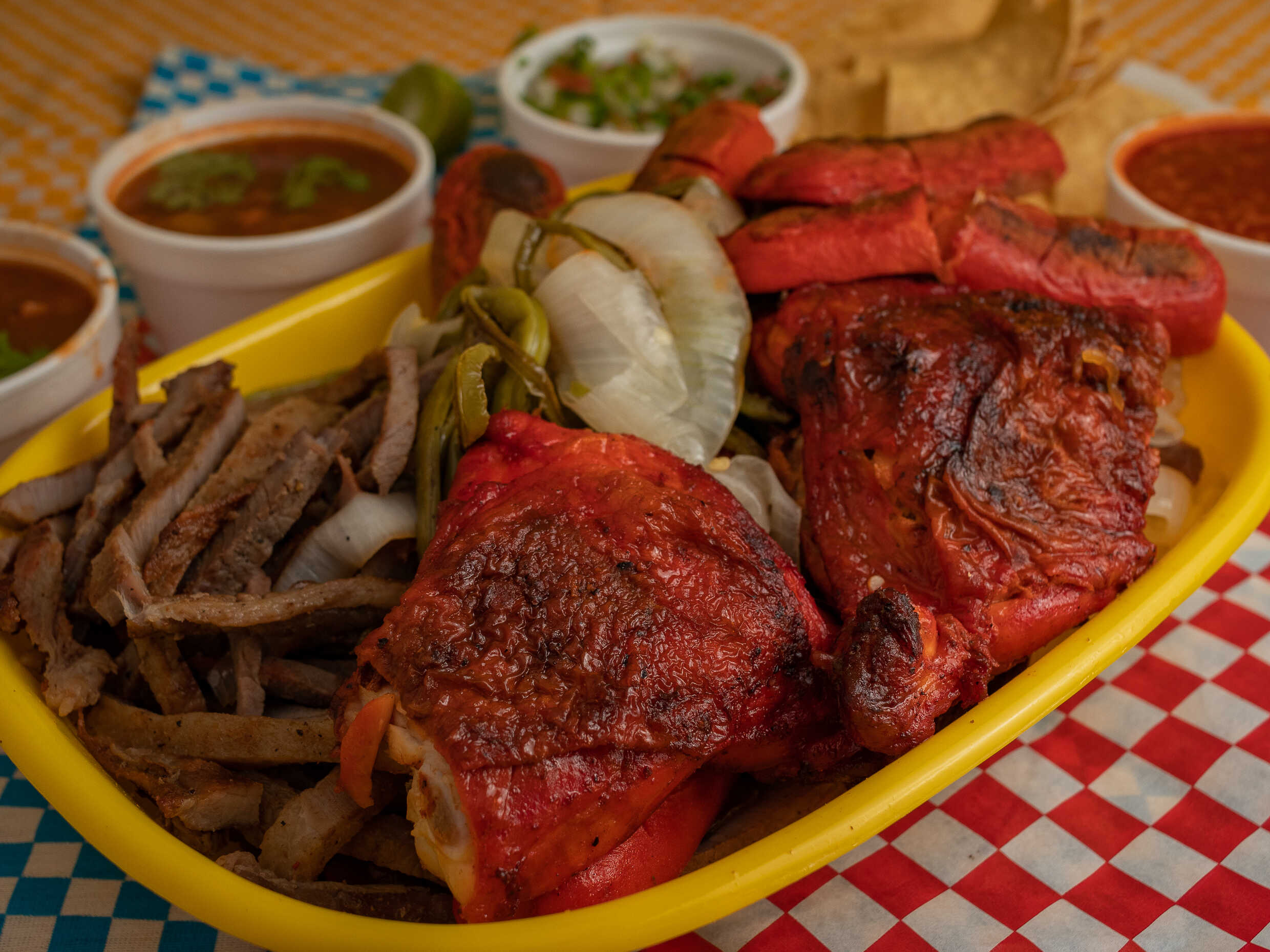 Incluye arroz, frijol, tortilla, totopo, salsa, limón y sal.