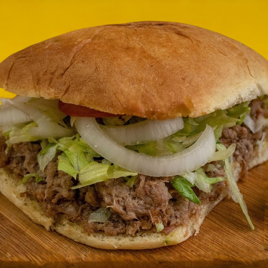 Torta grande de ternera, con jamon, aguacate, queso y crema.