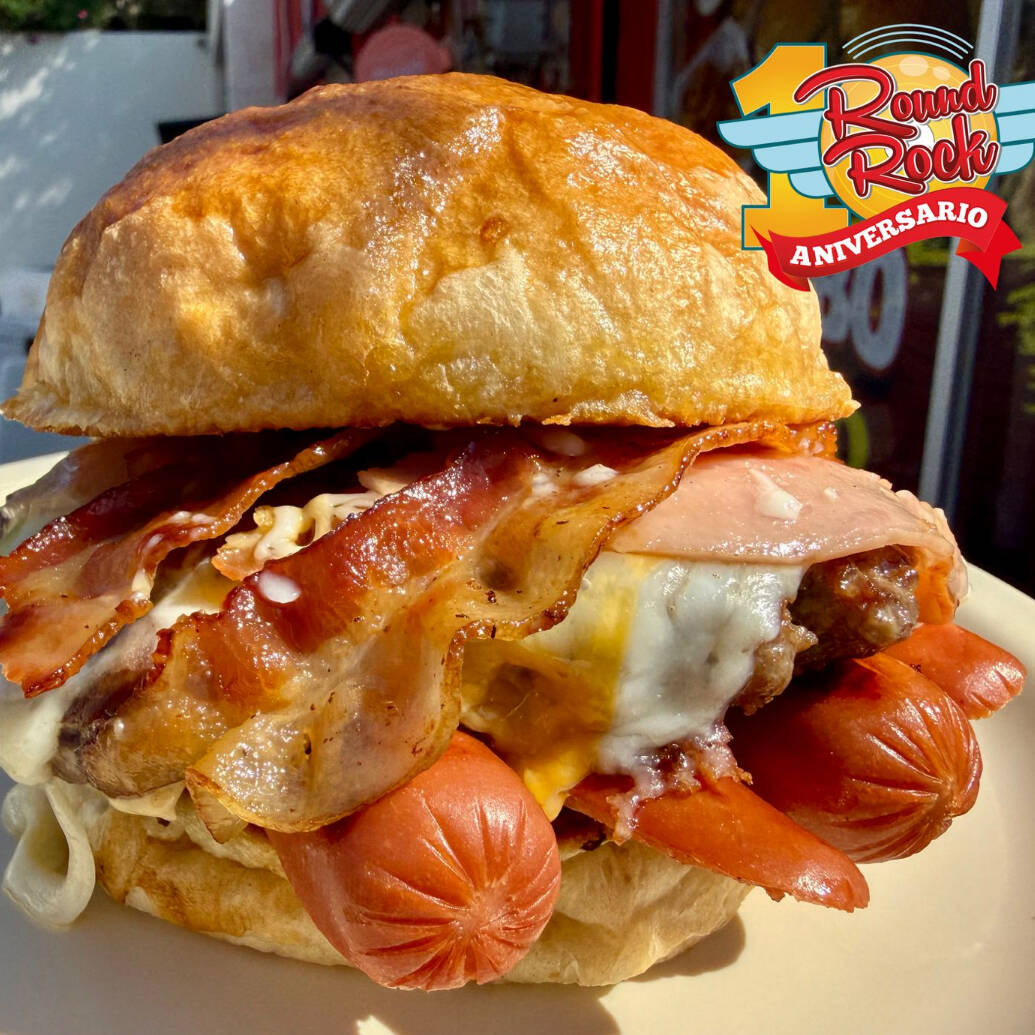 6 onzas de carne 90/10, aros de cebolla, doble queso, cebolla caramelizada, pepinillos, tocino, mayonesa bañada en salsa BBQ.