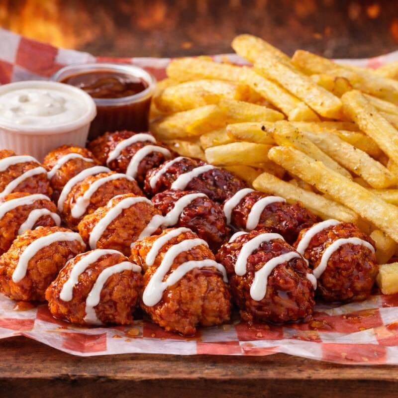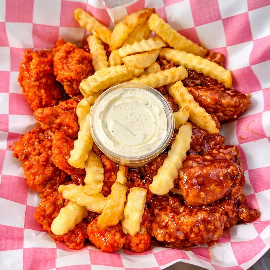 Papas Fritas Onduladas*1 + 20 Boneless Bañados en Salsa*1