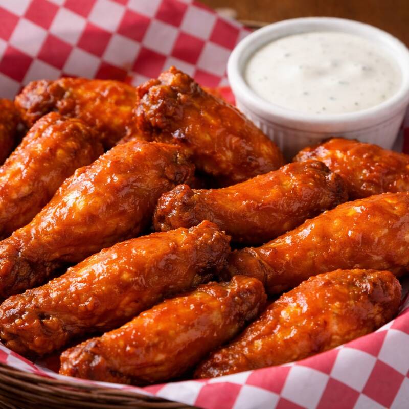 12 alitas jugosas, recién preparadas y bañadas en la salsa de tu elección. Crujientes por fuera, suaves por dentro y llenas de sabor. Incluye aderezo ranch para el dip perfecto. 🍗🔥