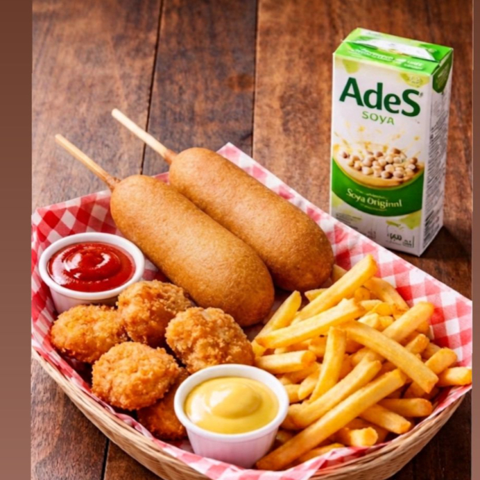 BANDERILLA + NUGGETS DE POLLO + PAPAS FRITA + JUGI