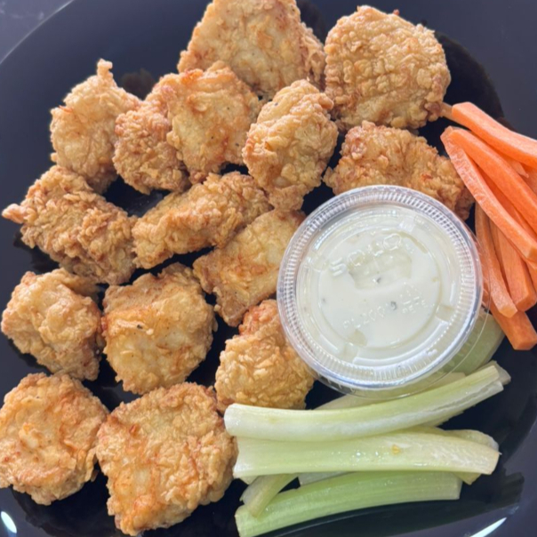 30 piezas de deliciosos boneless bañados en la salsa de tu elección, acompañados con papas sazonadas, zanahoria, apio y aderezo ranch