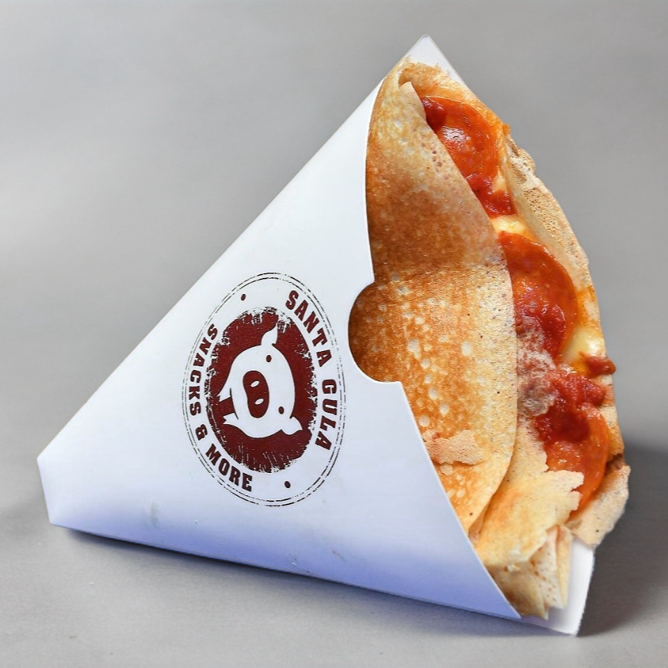 Creppa con 3 estilos de queso, pepperoni y salsa de tomate