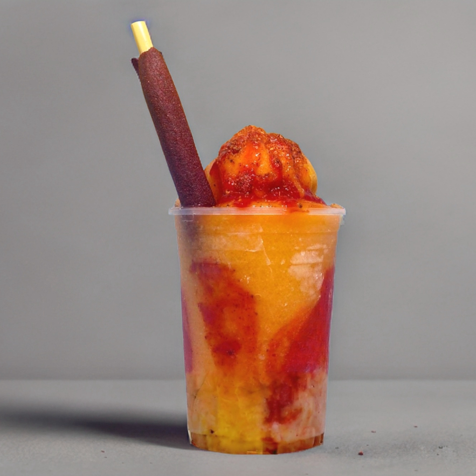 El smothie favorito acompañado de nieve de mango, chamoy y chile en polvo