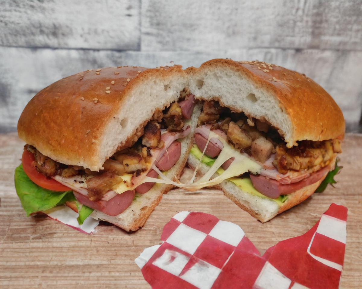 Pan de barra, milanesa y queso chihuahua