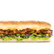 Pan integral con tiras de pechuga de pollo estilo teriyaki, doble porción de queso americano, cebollitas crujientes, lechuga, jitomates, pimientos verdes y aderezo de cebolla dulce.