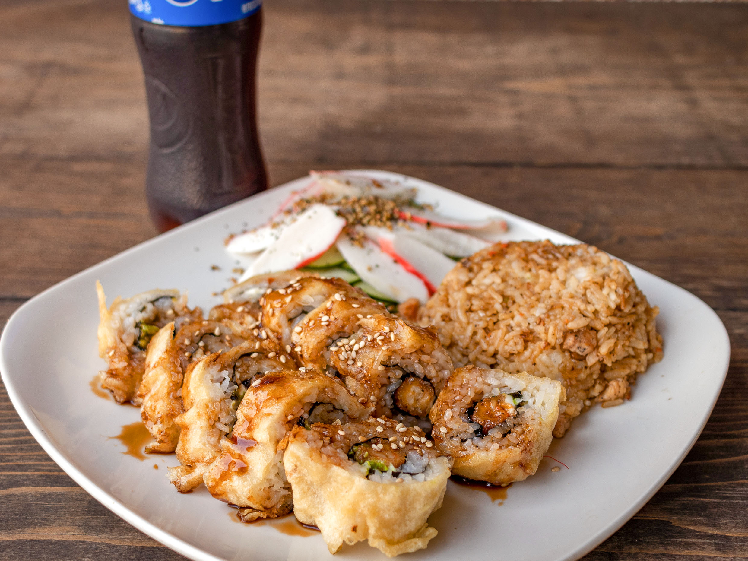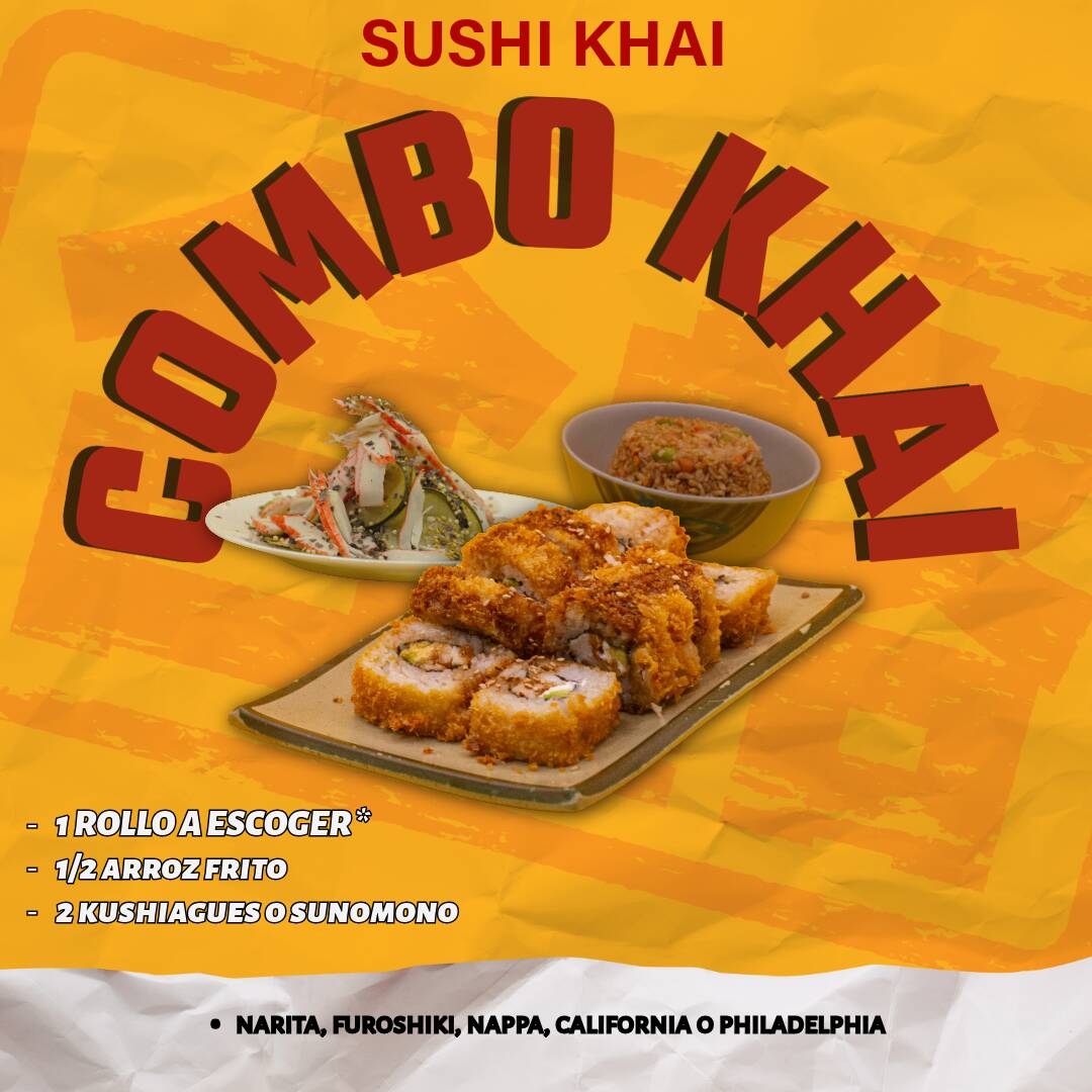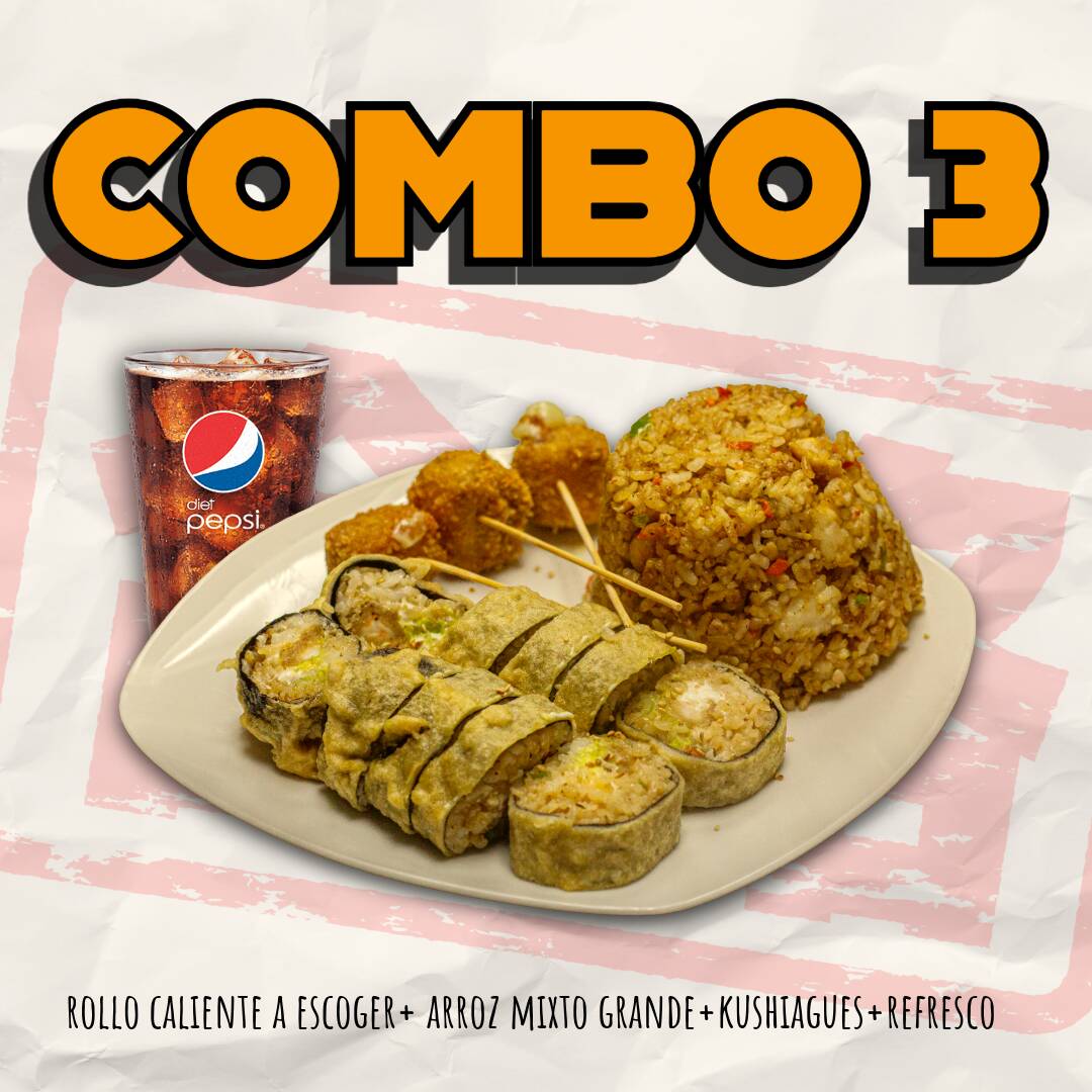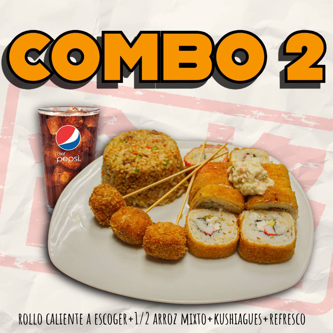 1 Rollo empanizado más medio arroz mxto , kushiagues un refresco.
