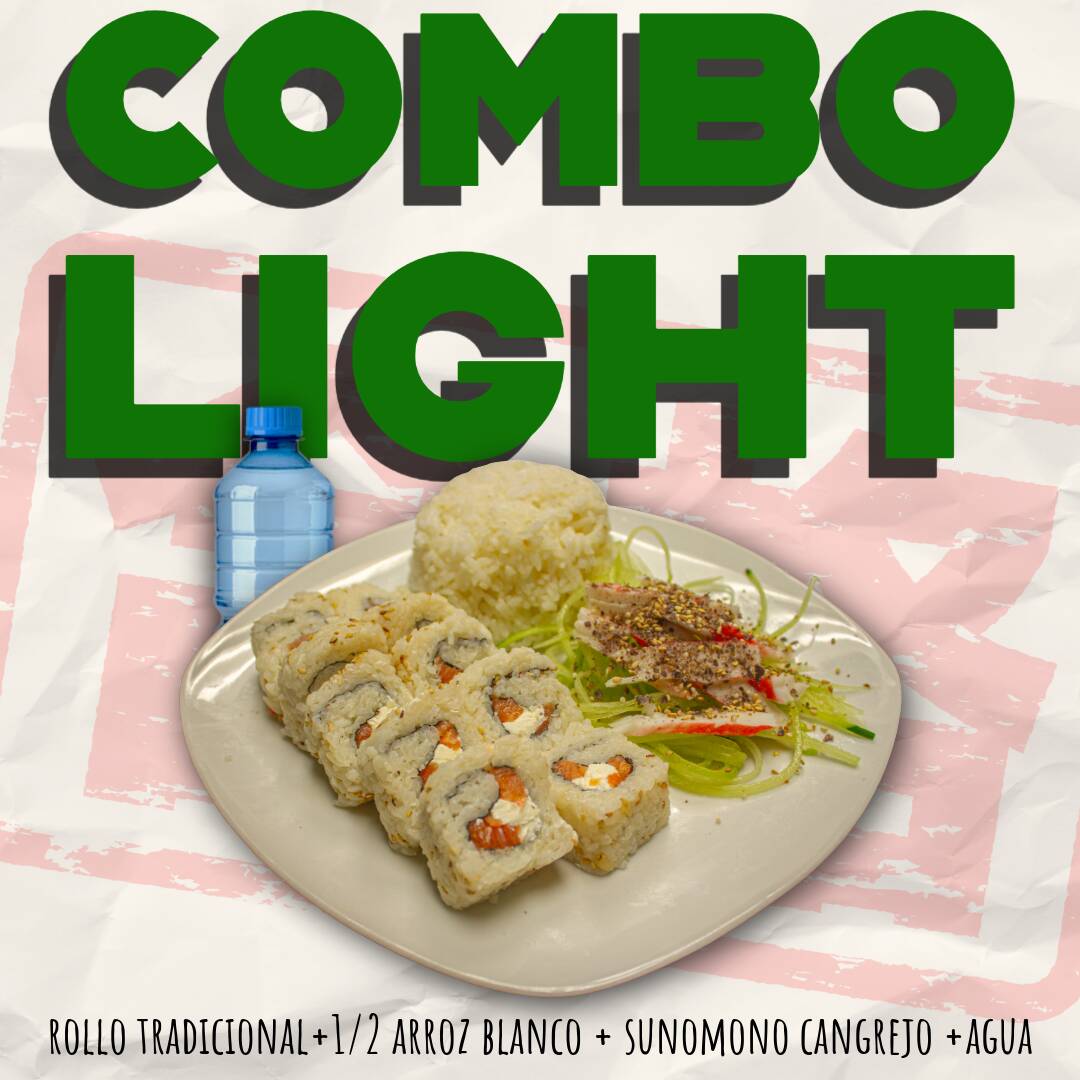 1 Rollo caliente a escoger, 1/2 Arroz frito, sunomono cangrejo y refresco