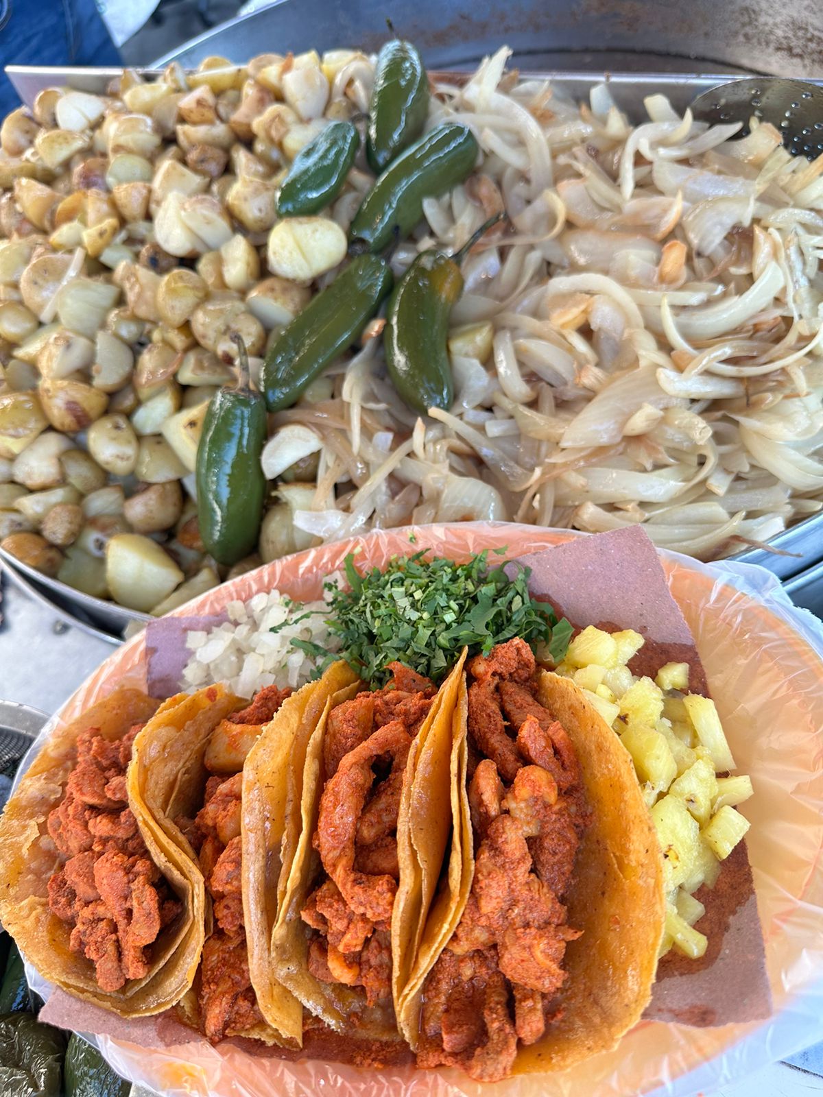 Taco de pastor, acompañado de tus ingredientes favoritos.
