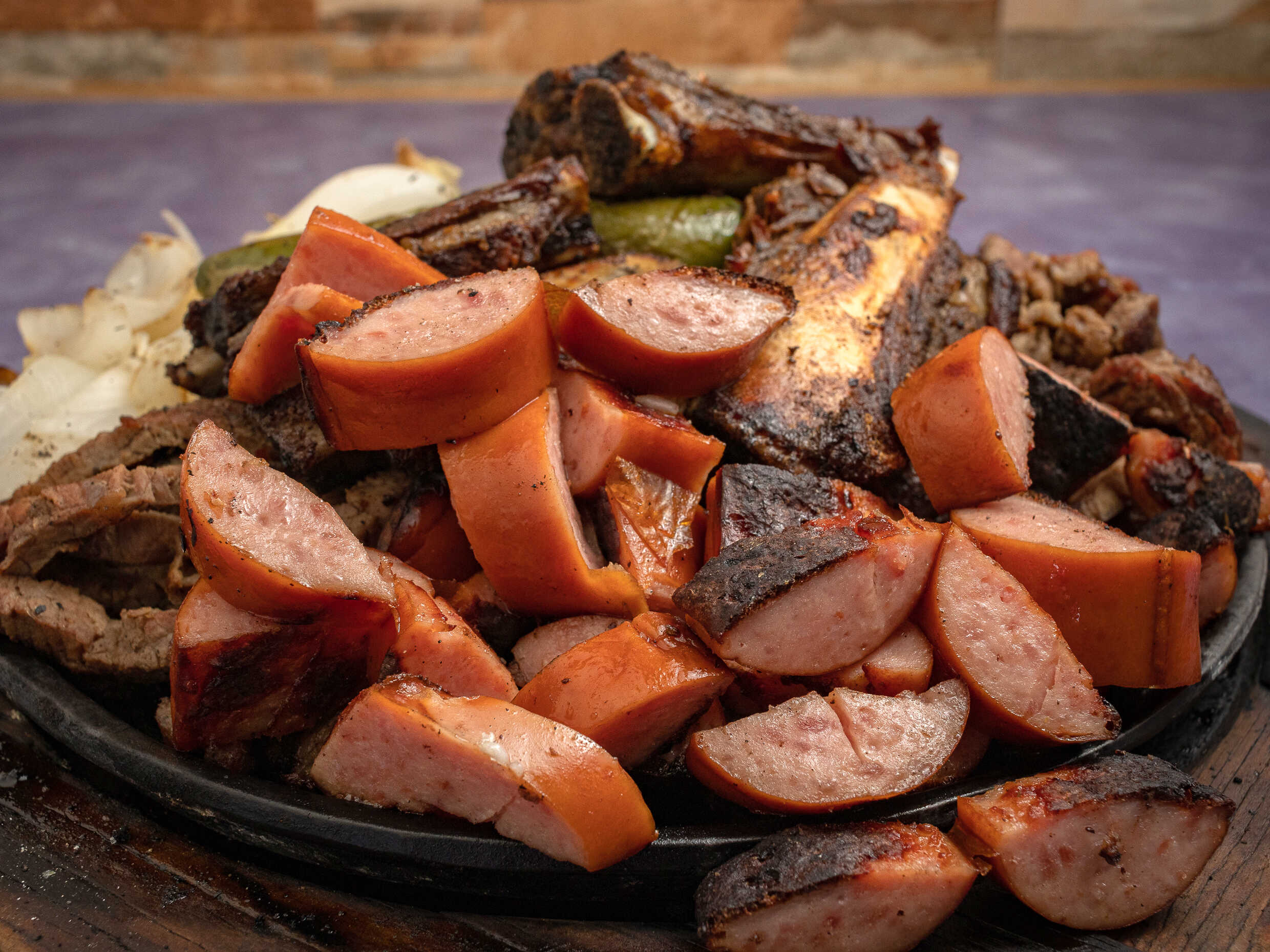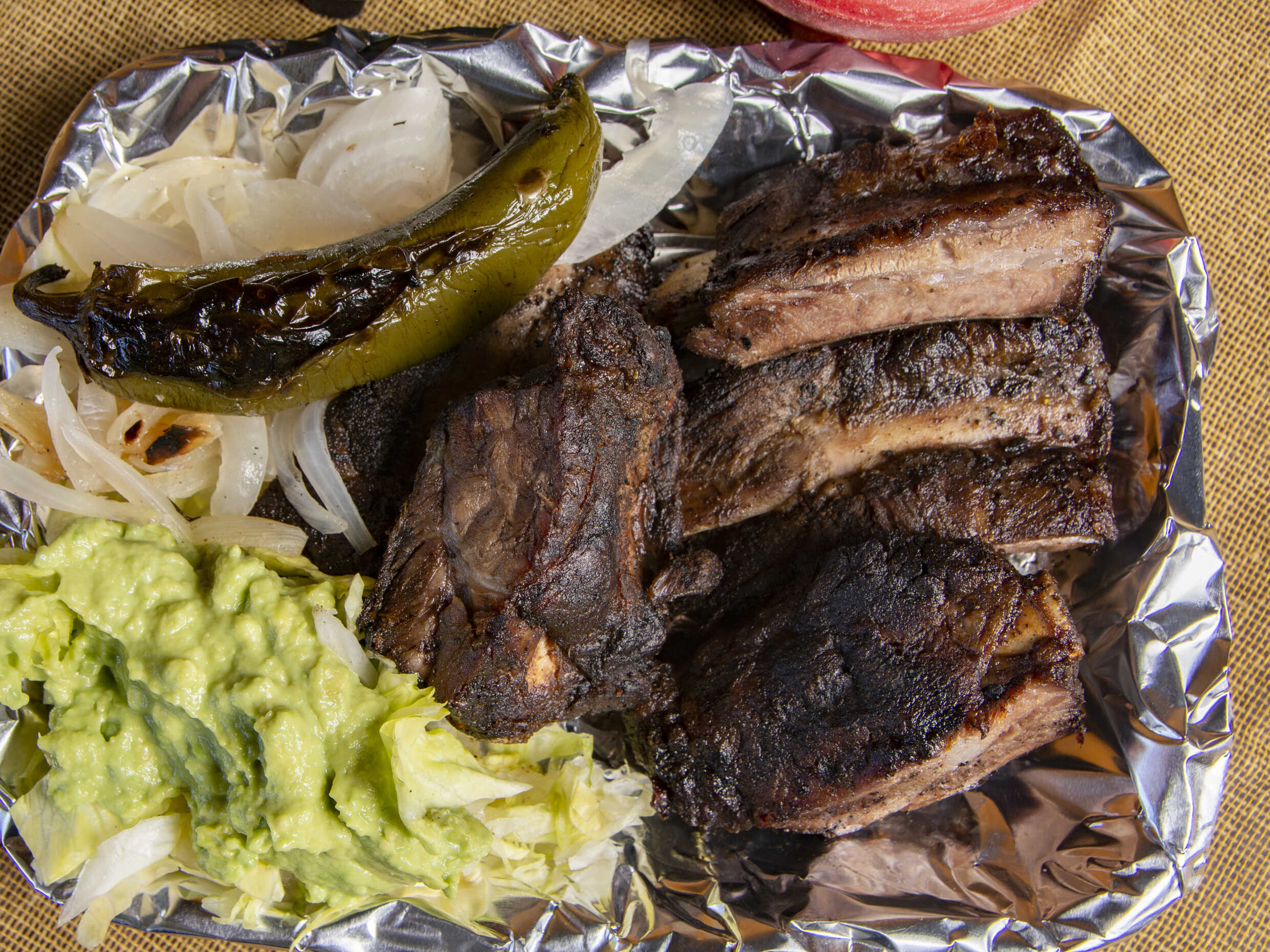 Incluye carne asada, chorizo polonés, costilla, cebolla asada, tortillas, totopos, guacamole y salsas.