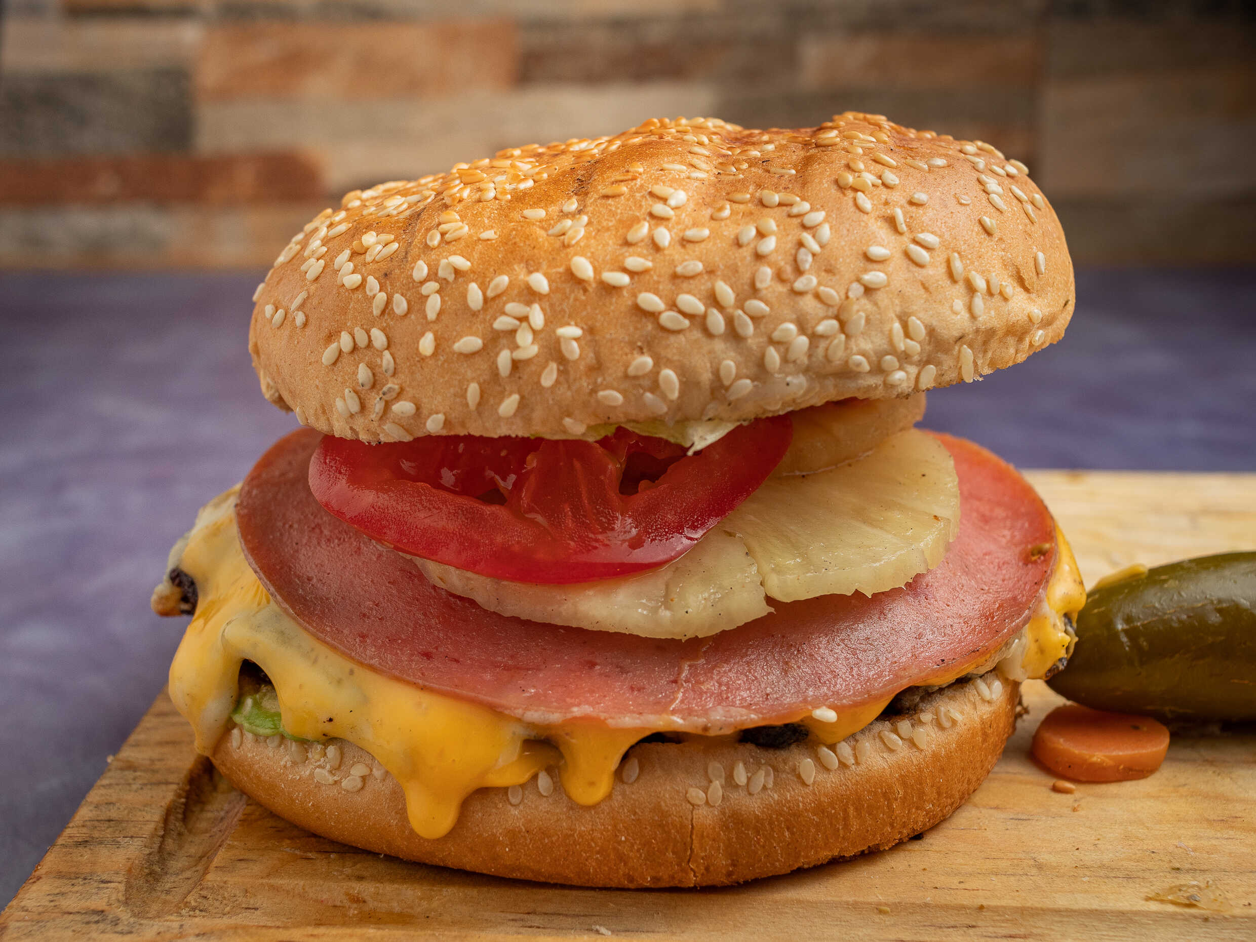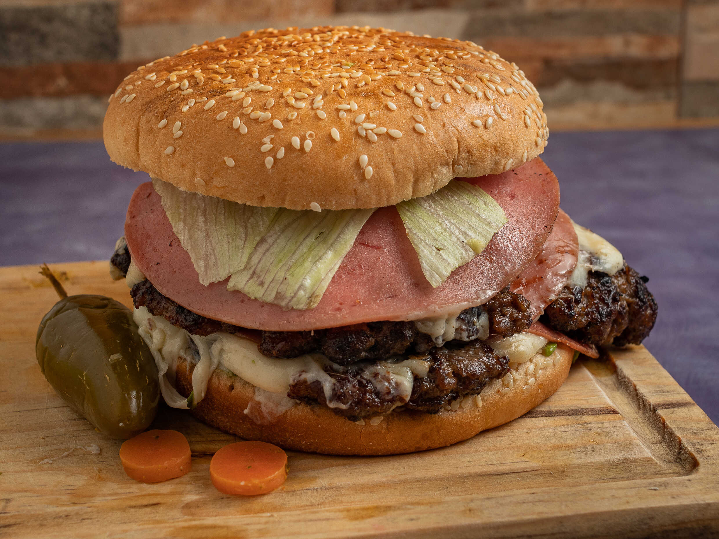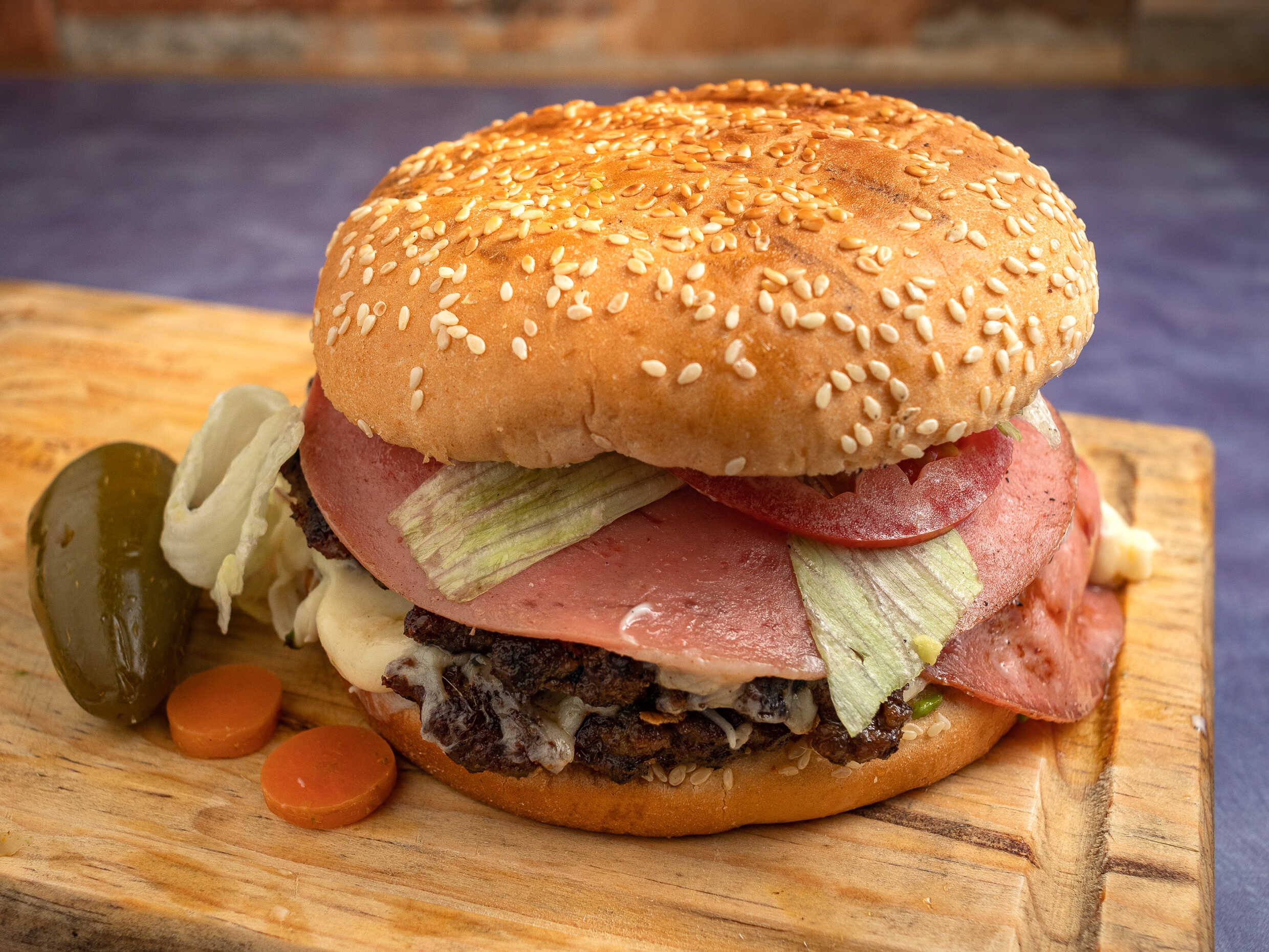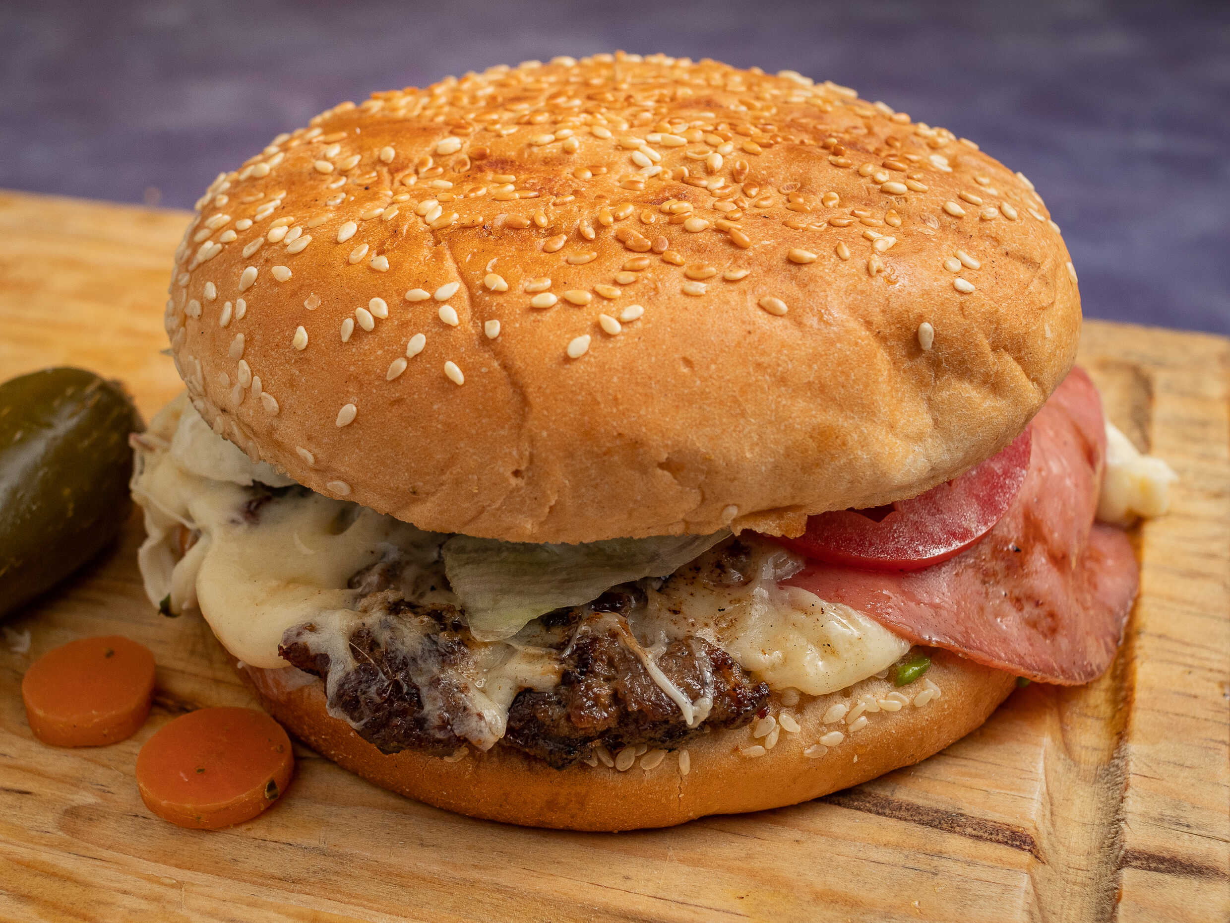 Lechuga, tomate, mayonesa, jamón, queso, aguacate y la carne.