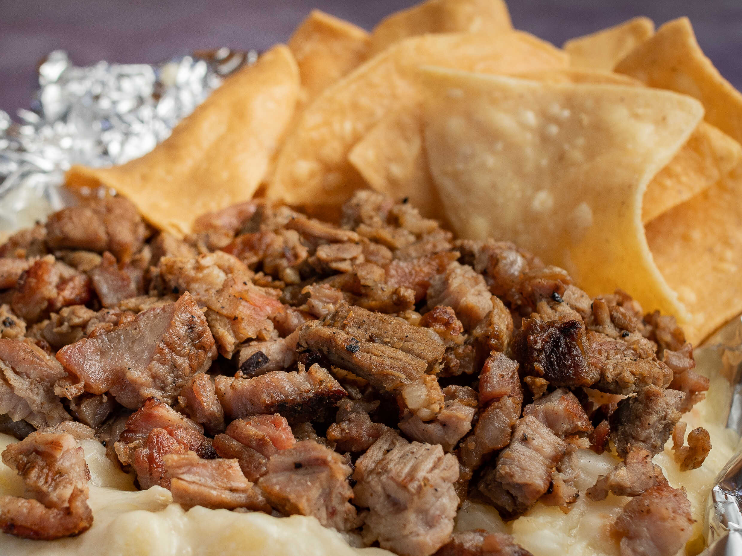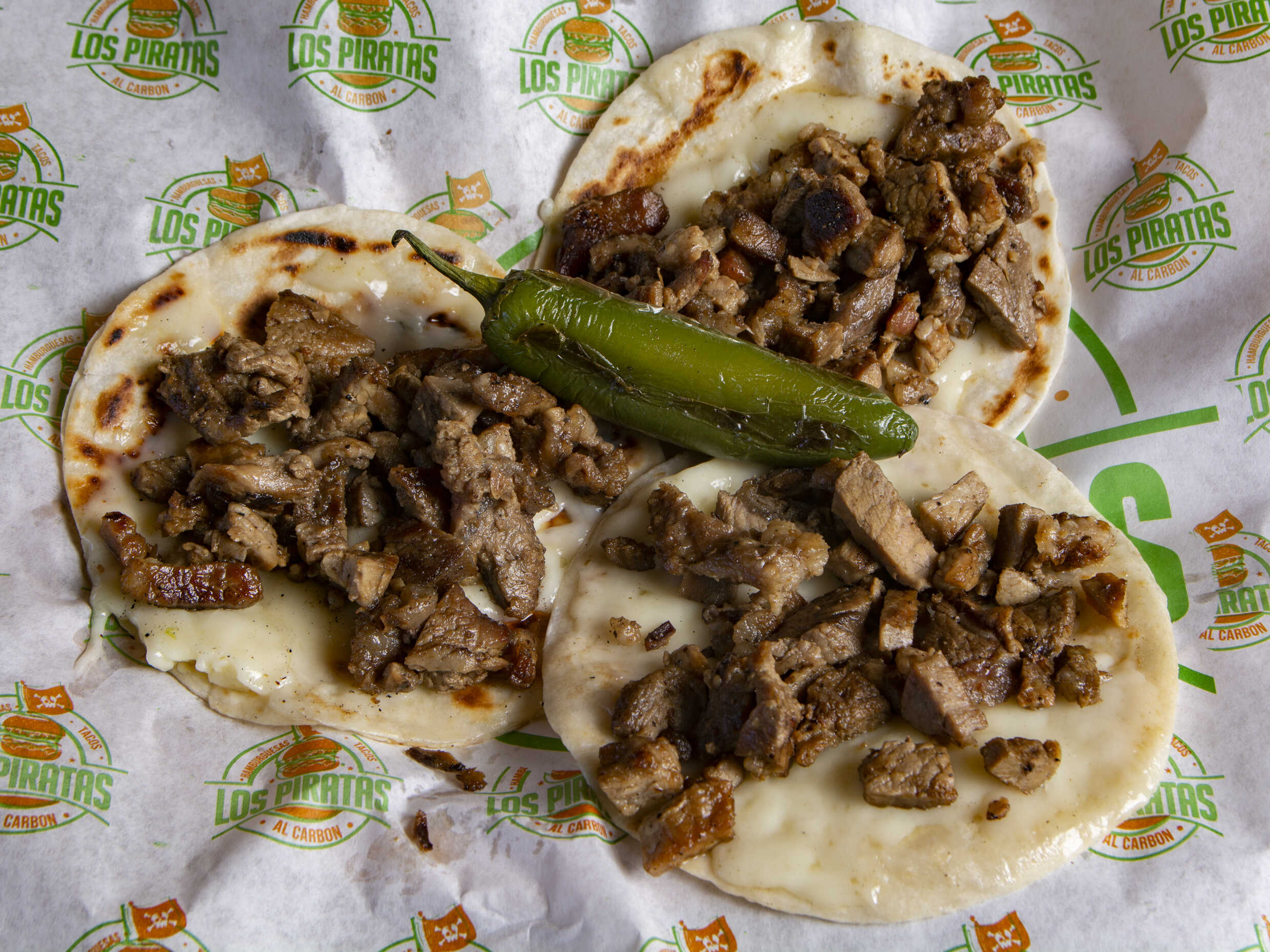 De carne asada, pastor, deshebrada, chicharrón, picadillo, tripita, ternera y barbacoa.