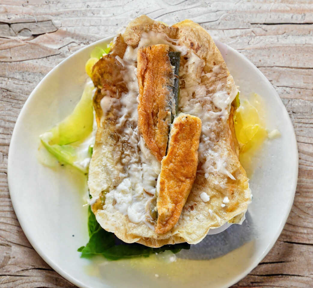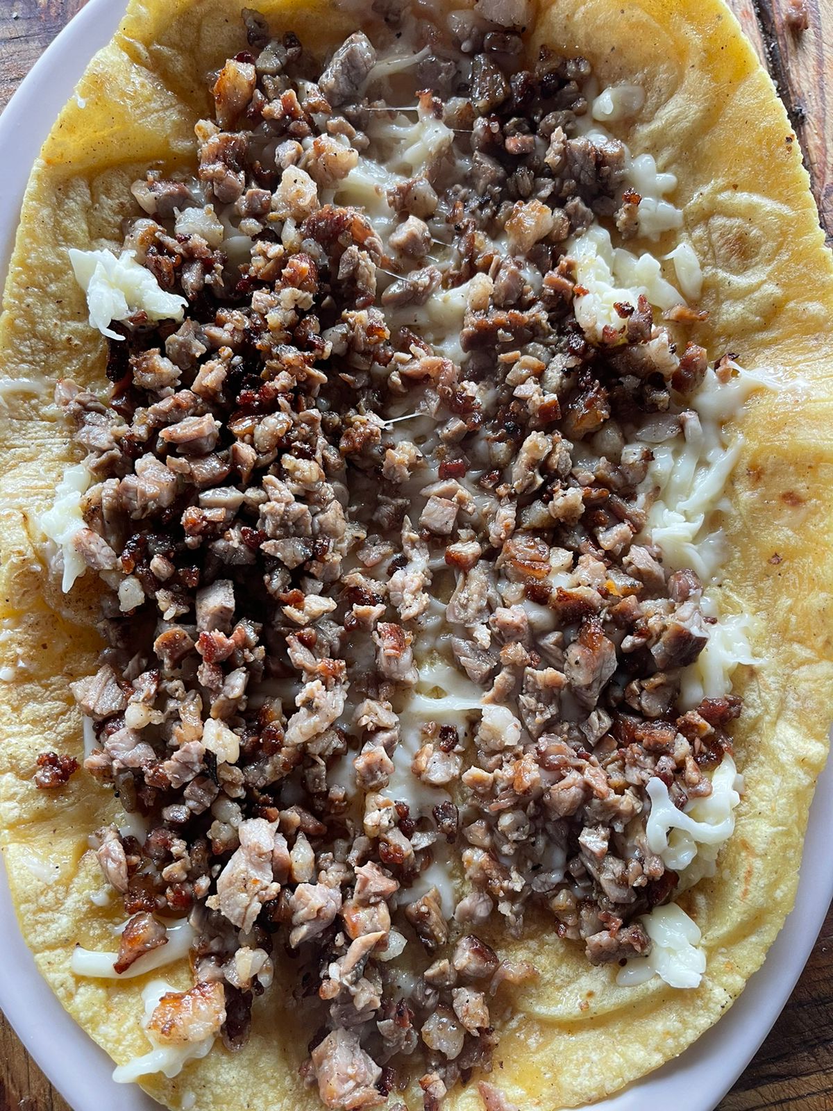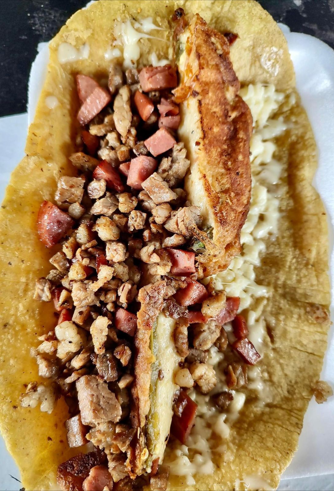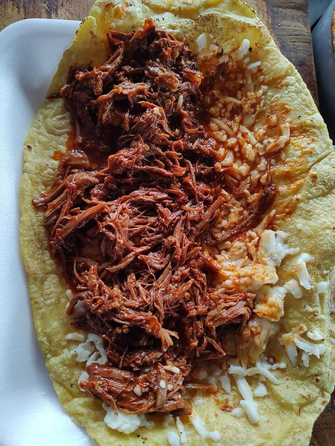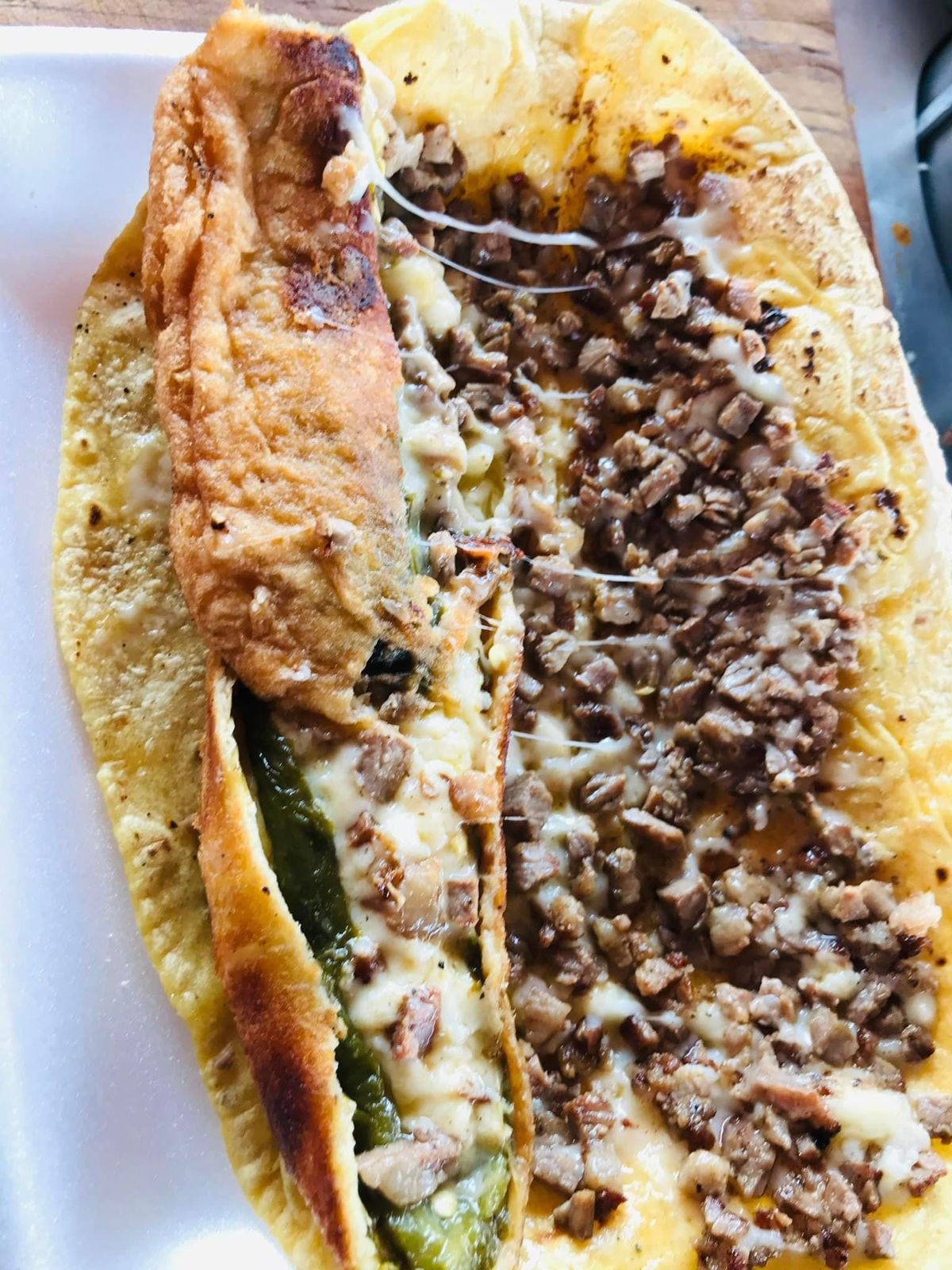 Quesadilla de maíz ( 1 unidad) , carne asada de 180Gramos aprox con polonés , salsas aparte ( salsa verde, pico de gallo y limón).