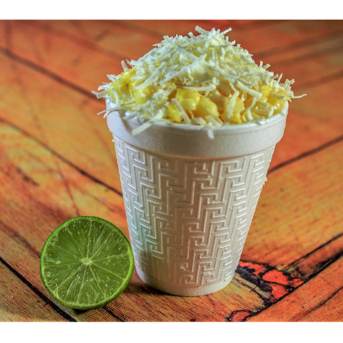 Elote amarillo desgranado, queso fresco, mayonesa y mantequilla