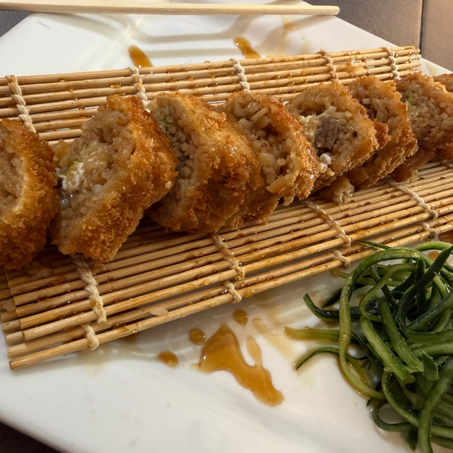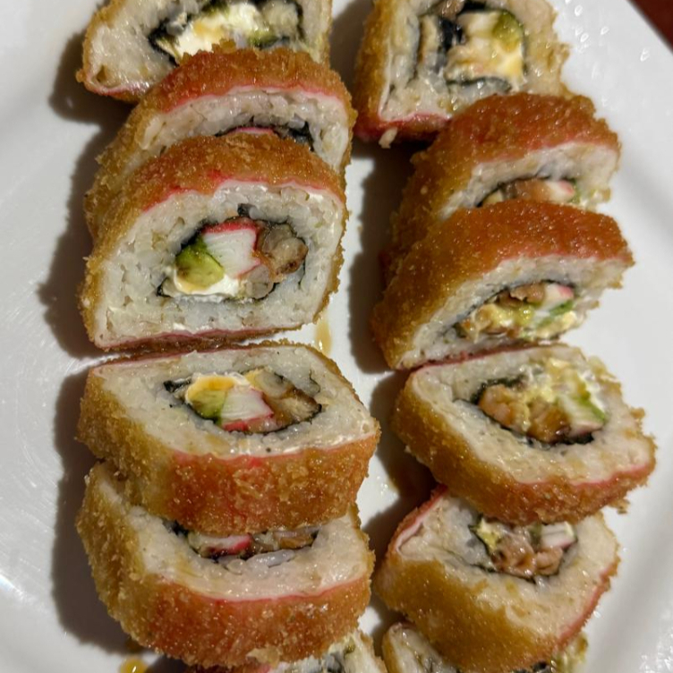 camaron empanzado, philadelphia, aguacate, chile chipotle al exterior y tampico al exterior