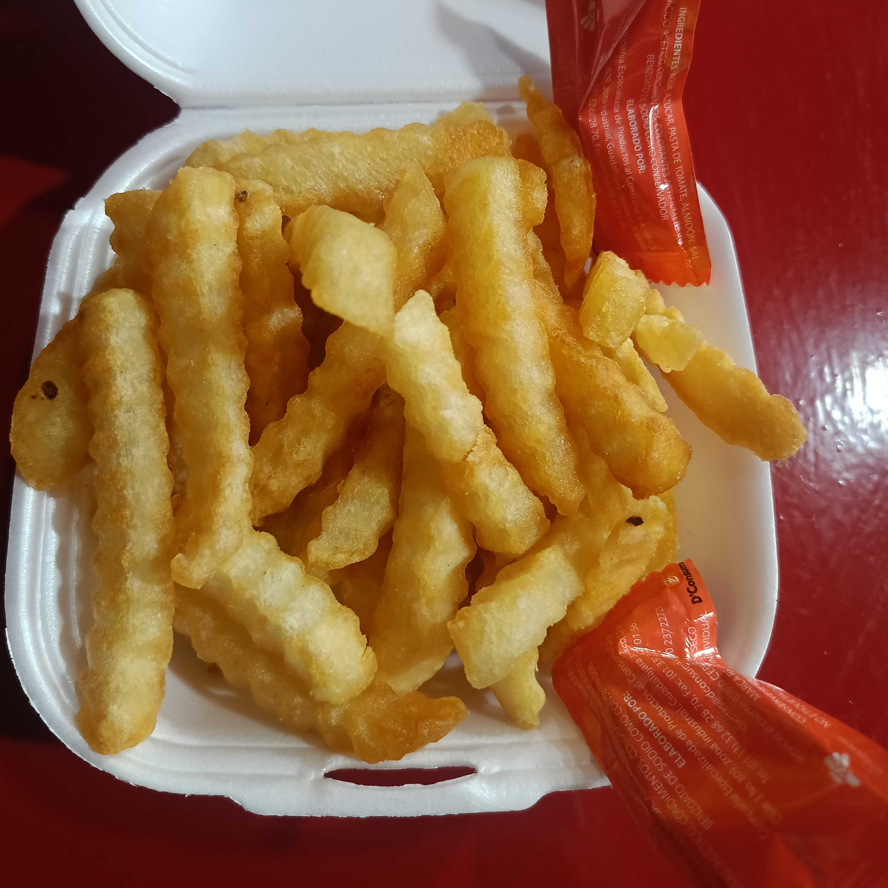 Papas a la francesa con catsup y salsa valentina. (Porción personal)