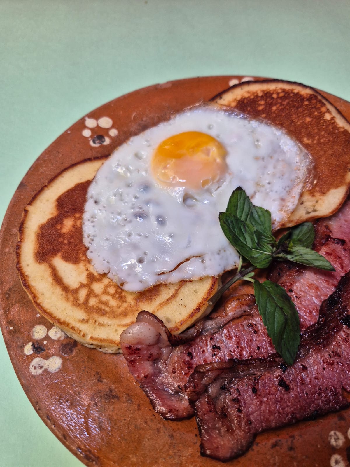 2 Piezas acompañadas de 1 huevo y tocino frito.