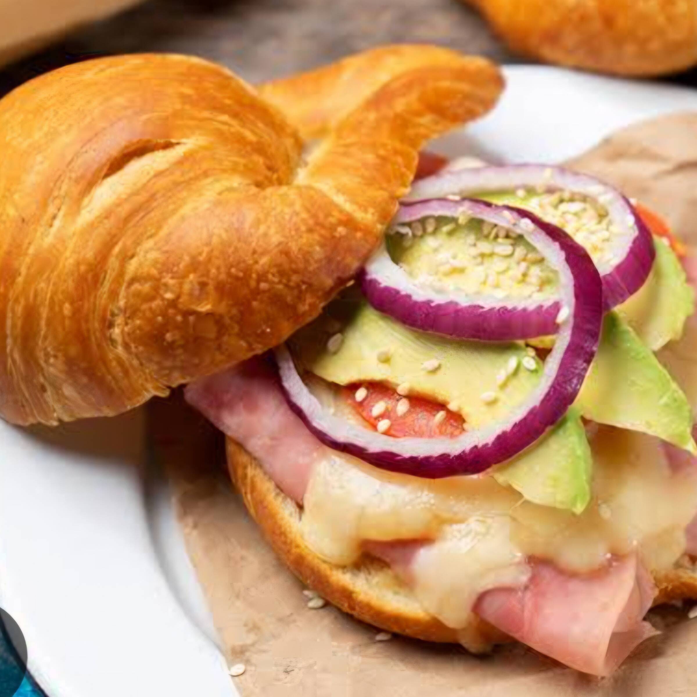 pan cuernito, mayonesa, jamon, queso amarillo, quesillo, lechuga
