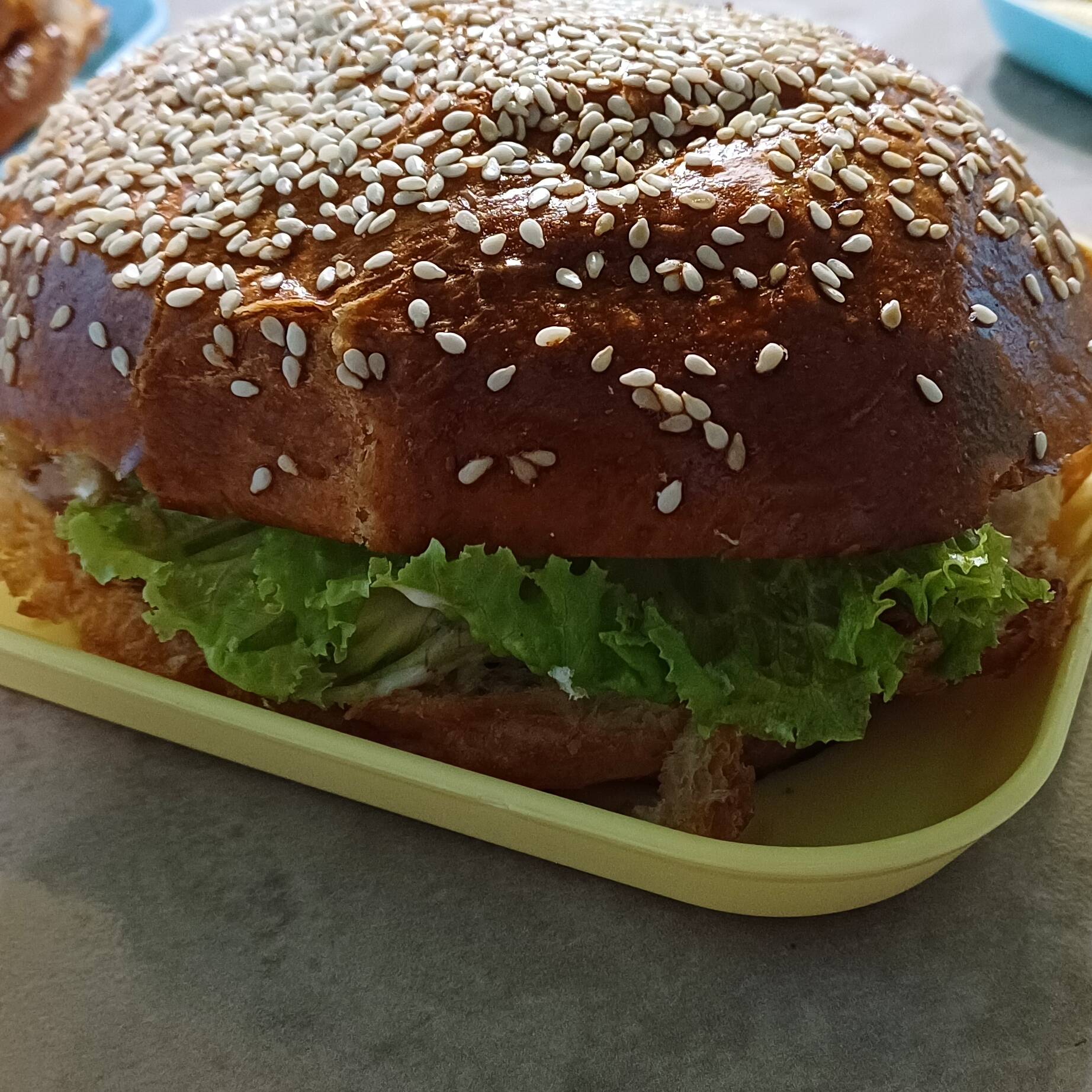 pan de telera, mayonesa, frijol, quesillo, milanesa de pollo, lechuga, tomate, aguacate, chiles en vinagre