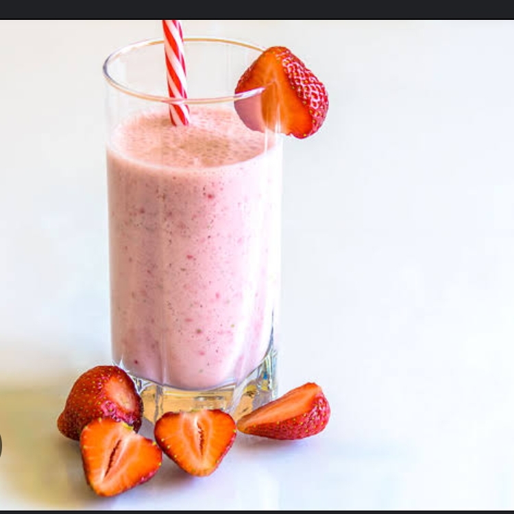 Leche entera , yogurth de fresa , fresa, hielos