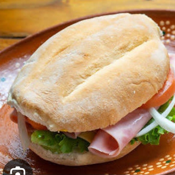 pan telera, mayonesa, frijol, quesillo, jamon, lechuga, tomate, aguacte, chiles en vinagre