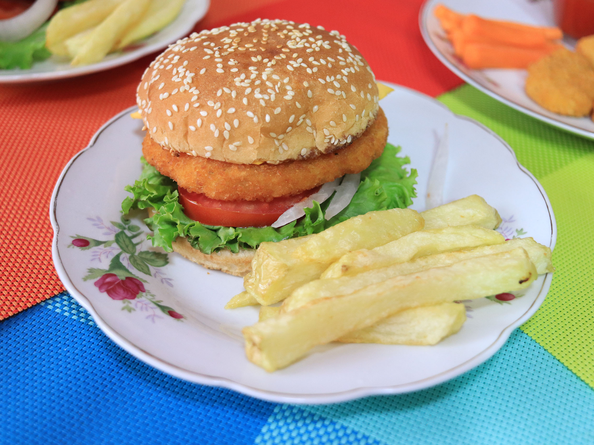 Hamburguesa de pollo fuego