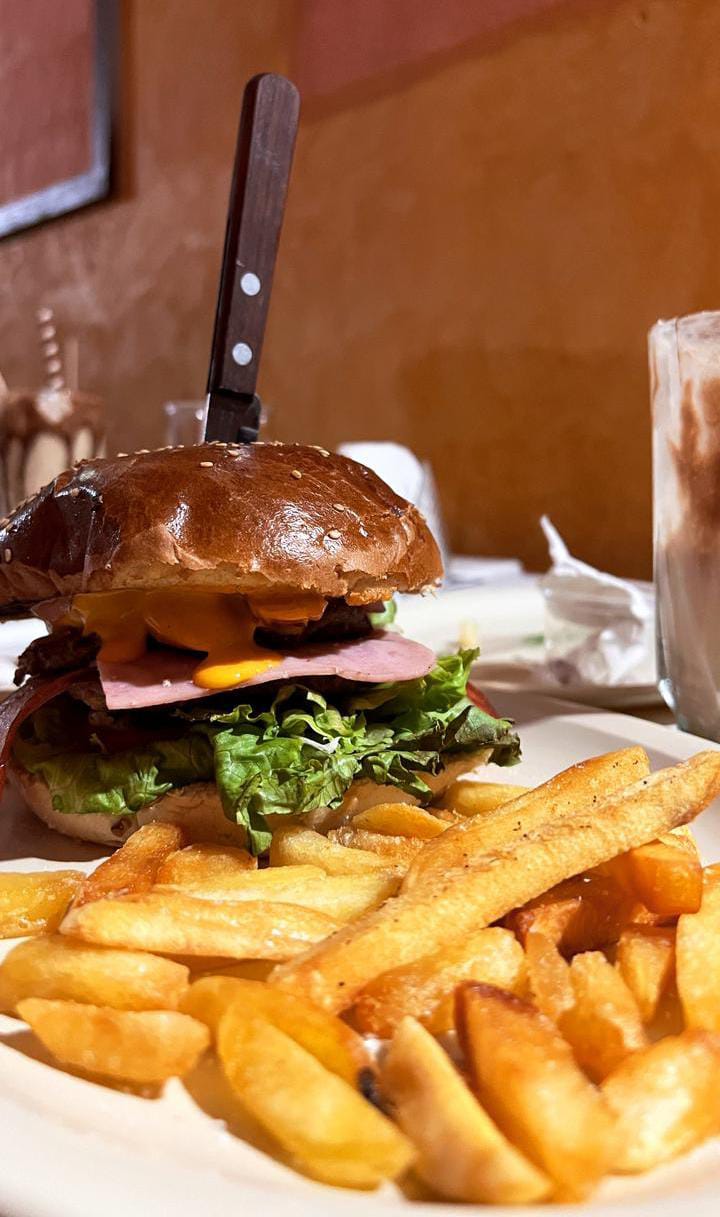 Incluye papas, carne, queso amarillo y jamón, preparadas con mayonesa, lechuga, tomate, cebolla, picante, cátsup y mostaza.