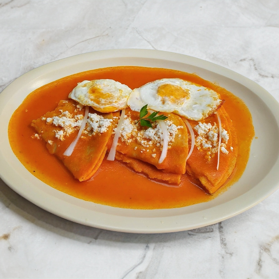 Preparadas con queso manchego, crema y cebolla, incluye telera, café, pan dulce y salsa picante.